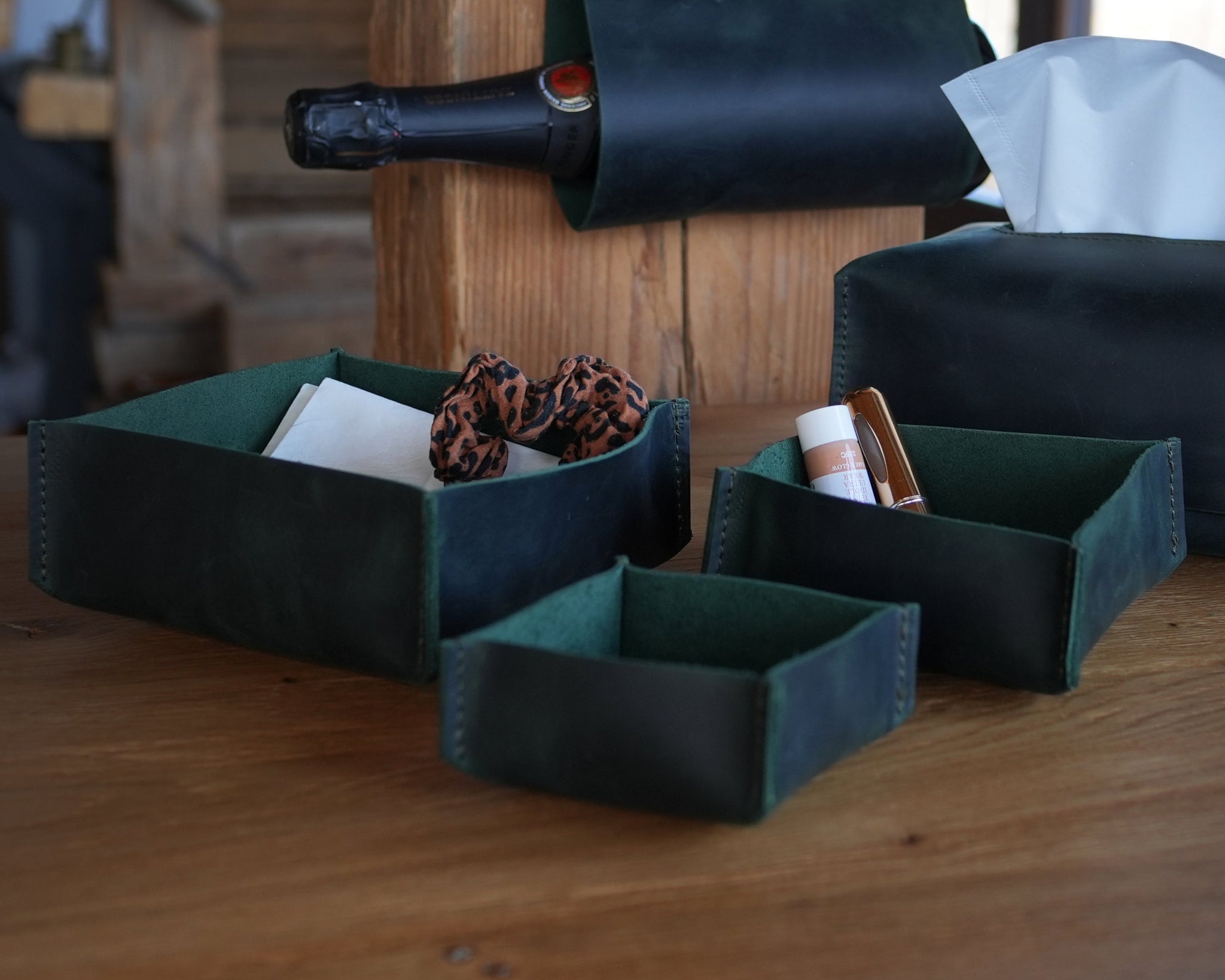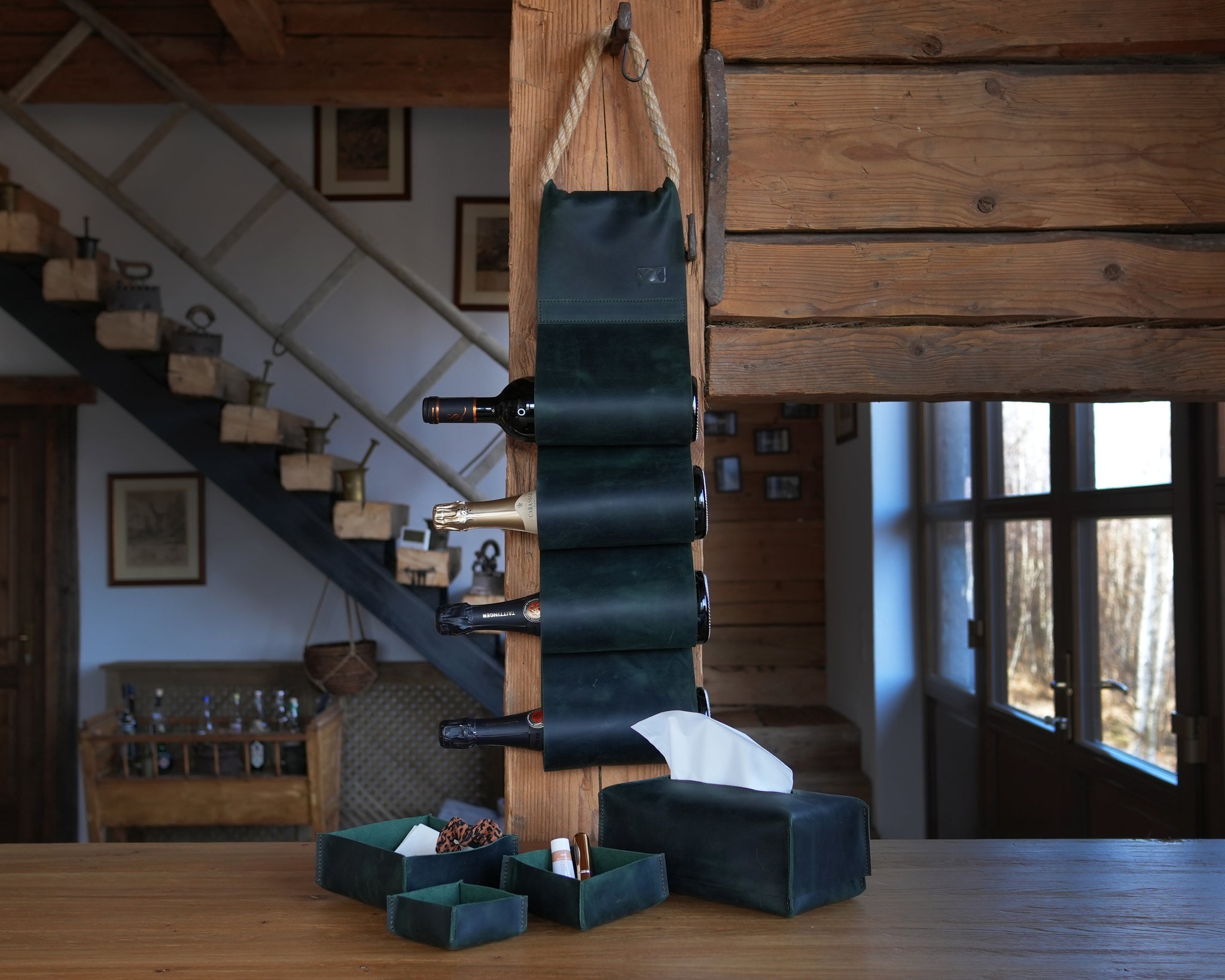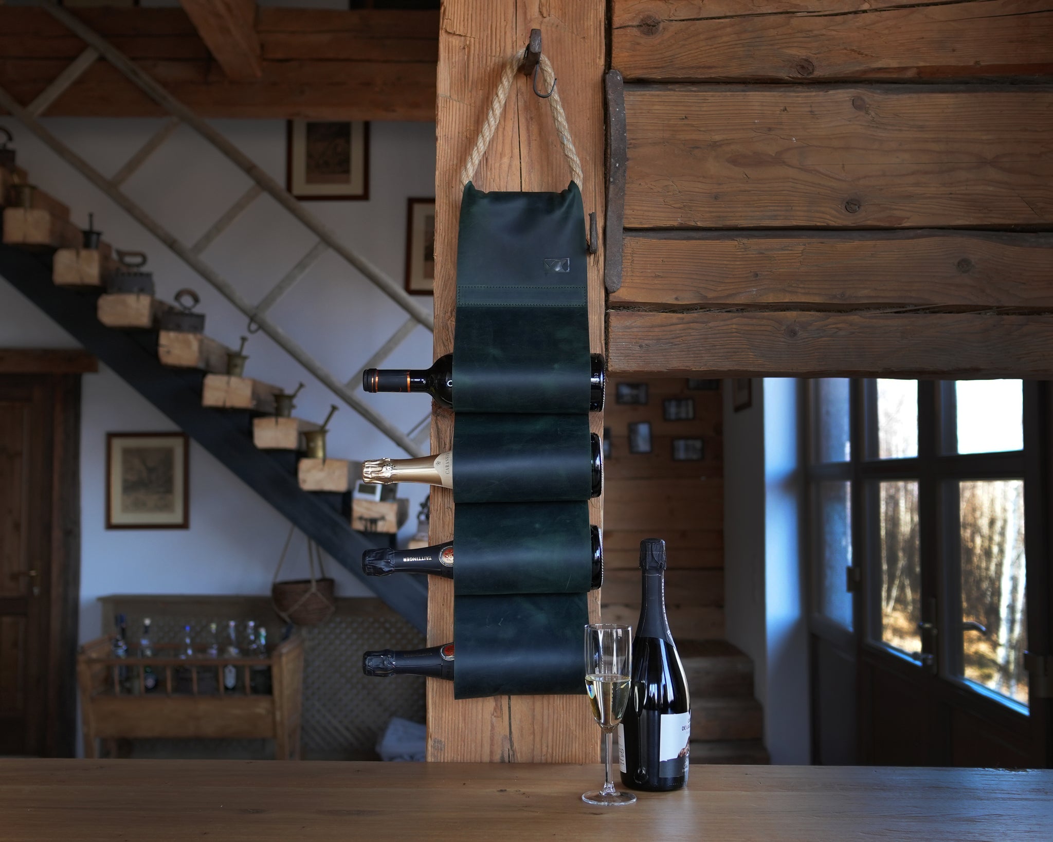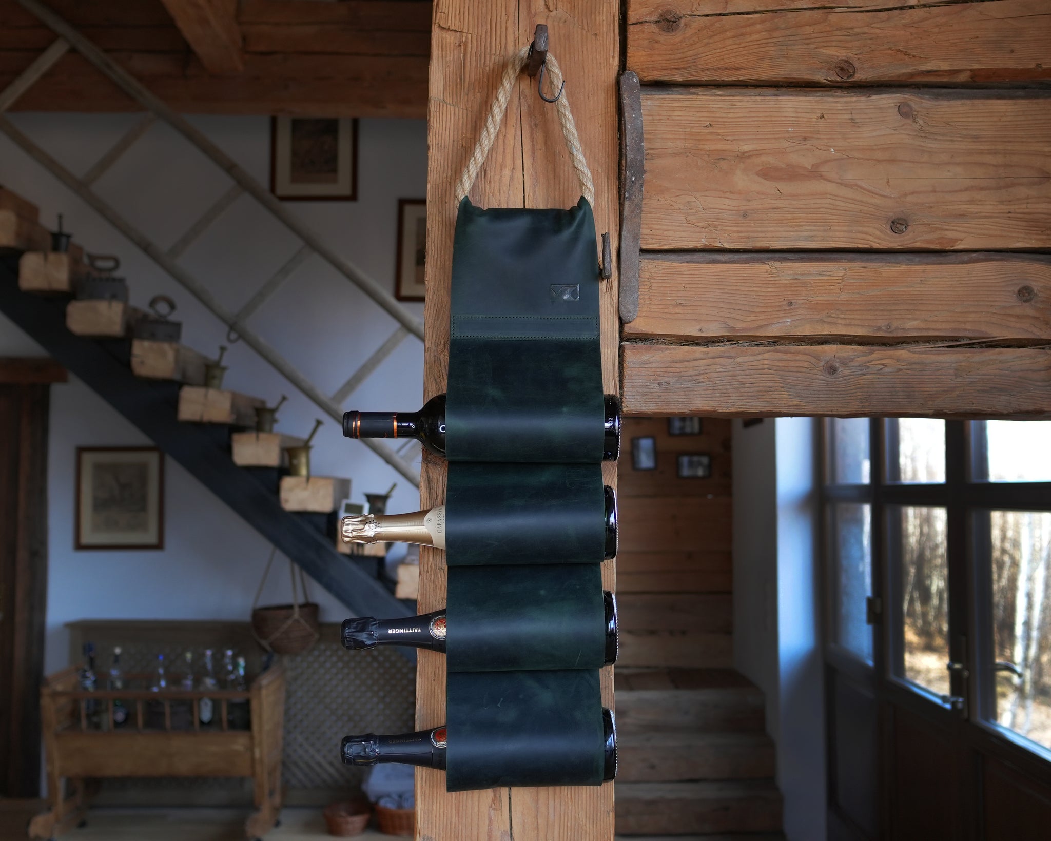 - Bőr borosüveg tartó