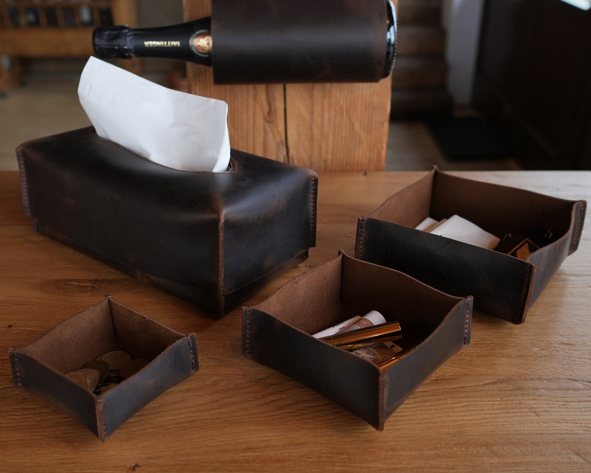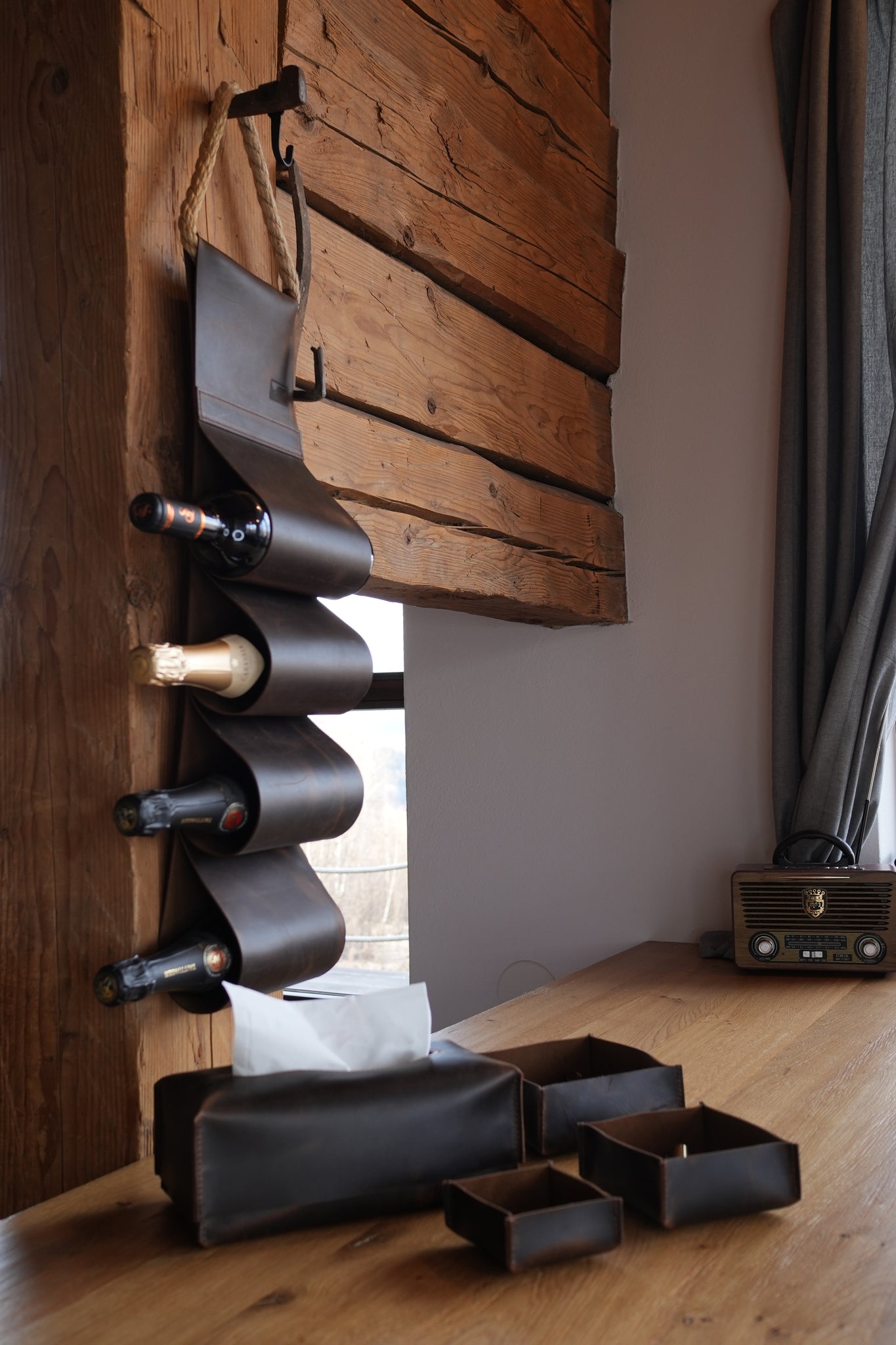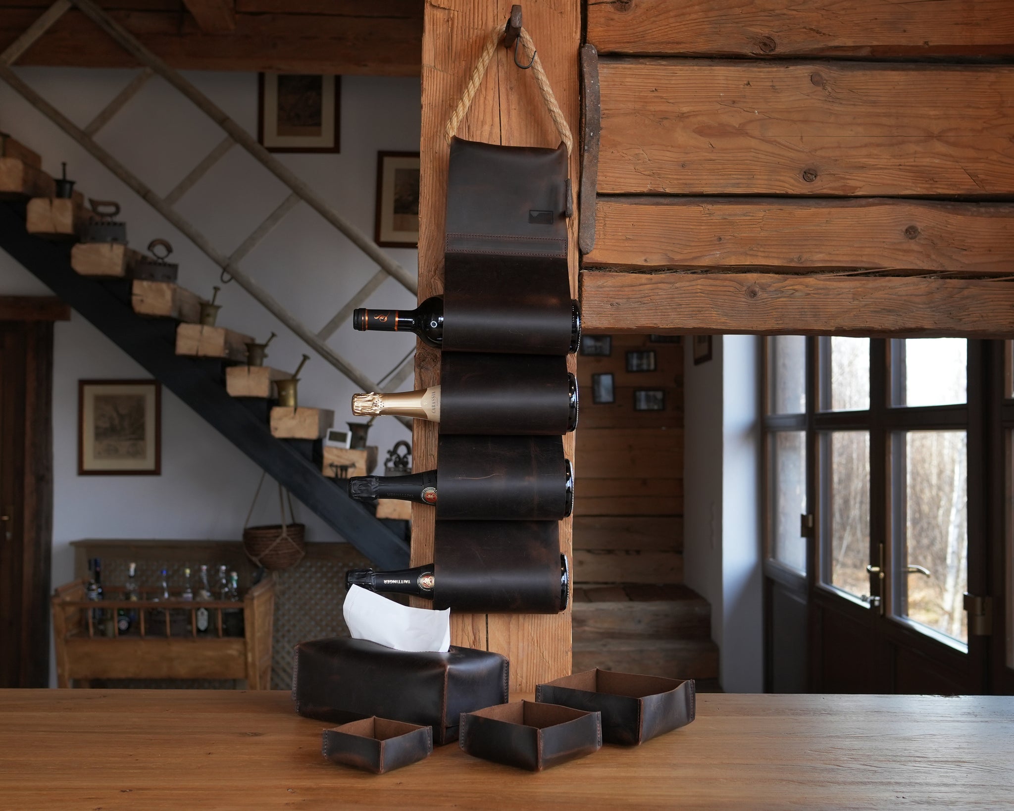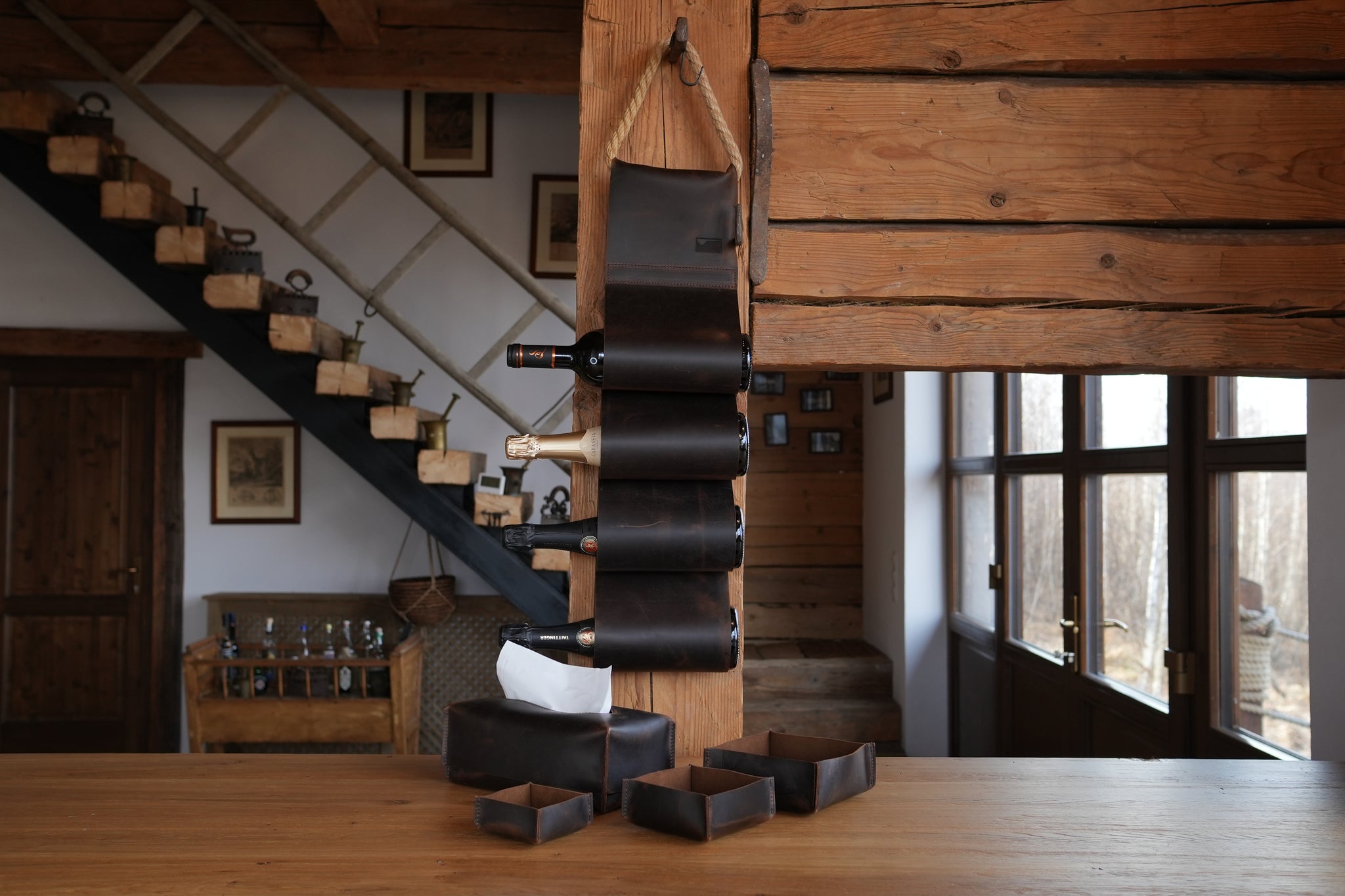 - Suport din piele pentru sticle de vin